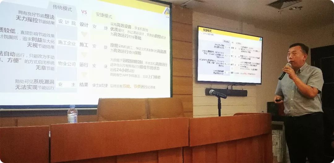 設(shè)計層面:傳統(tǒng)模式中設(shè)計院無力操控節(jié)能結(jié)果,采用安捷模式,設(shè)計院可以主動優(yōu)化設(shè)計;施工層面:傳統(tǒng)模式中施工單位無視節(jié)能結(jié)果追求自身利益最大化,安捷模式則促使施工單位嚴格按圖采購和施工,保障高品質(zhì)系統(tǒng)的搭建;運維層面:傳統(tǒng)模式下的物業(yè)公司求“簡單、方便”,沒有有效的節(jié)能手段,采用安捷模式則可以實現(xiàn)線上實時監(jiān)控、主動推送故障信息,線下物業(yè)可以主動上門服務(wù);結(jié)果層面:傳統(tǒng)模式下業(yè)主無法主動實現(xiàn)節(jié)能運行,而安捷模式可以完美實現(xiàn)節(jié)能、節(jié)費的落地。