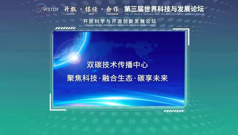2021年11月7日,由天津安捷物聯(lián)科技股份有限公司牽頭、國(guó)內(nèi)數(shù)十家機(jī)構(gòu)共同發(fā)起成立的“雙碳技術(shù)傳播中心”在第三屆世界科技與發(fā)展論壇分論壇——開放科學(xué)與開源創(chuàng)新發(fā)展論壇上正式揭牌。