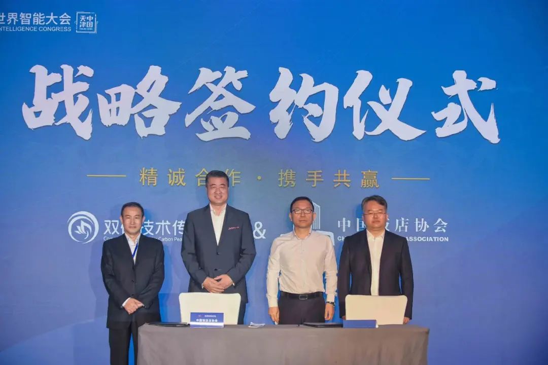 會上,天津市科協(xié)黨組書記、常務(wù)副主席陸為民為天津安捷物聯(lián)科技股份有限公司授予天津市“雙碳”技術(shù)院士專家協(xié)同創(chuàng)新中心牌匾,安捷物聯(lián)執(zhí)行董事龐文魁接受授牌;雙碳技術(shù)傳播中心與中國飯店業(yè)協(xié)會、天津安捷物聯(lián)與海河設(shè)計集團分別簽署戰(zhàn)略合作協(xié)議。