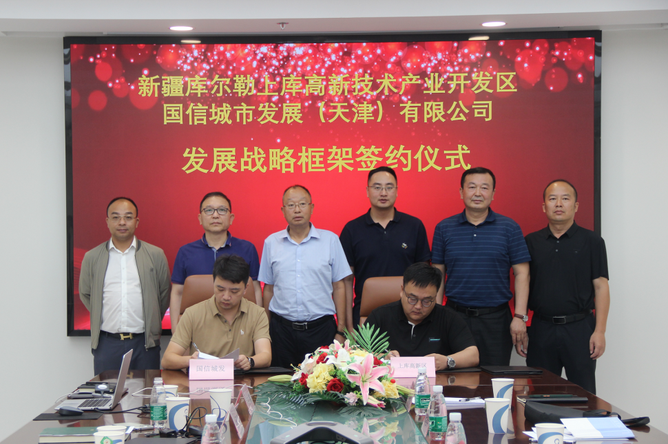 會(huì)上,新疆庫爾勒上庫高新技術(shù)產(chǎn)業(yè)開發(fā)區(qū)與國信城市發(fā)展(天津)有限公司簽署發(fā)展戰(zhàn)略框架協(xié)議,庫爾勒市政協(xié)黨組書記、副主席、上庫高新區(qū)黨工委書記鮮智、安捷物聯(lián)董事長劉柏呈等見證。