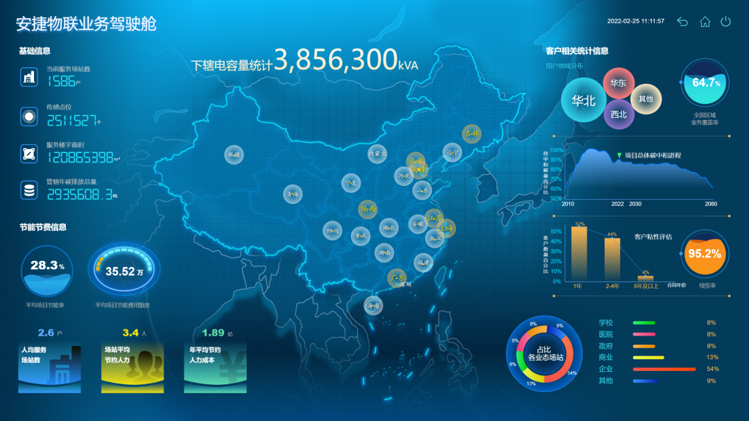 依托本成果,安捷物聯(lián)成為國內(nèi)首家通過BSI(英國標(biāo)準(zhǔn)協(xié)會)認(rèn)證(基于PAS 2060:2014標(biāo)準(zhǔn)實(shí)現(xiàn)碳中和)的綜合能源解決方案提供商,截至2021年10月,本成果已服務(wù)包括國家會展中心(天津)、西安曲江開發(fā)區(qū)、北京亦莊科技新城、北京大學(xué)等全國一千余家用戶,覆蓋大型公共建筑、商業(yè)地產(chǎn)、酒店、軌道交通等領(lǐng)域。應(yīng)用樓宇面積超1億平米,可學(xué)習(xí)、可分析、可預(yù)測、可決策,能夠幫助用戶將樓宇保持在最健康的狀態(tài),同時(shí)使樓宇內(nèi)的用戶體驗(yàn)達(dá)到最佳,可節(jié)約運(yùn)行成本50%以上,節(jié)省系統(tǒng)維護(hù)費(fèi)用20%以上,降低能耗15%以上,降低碳排放超百萬噸。